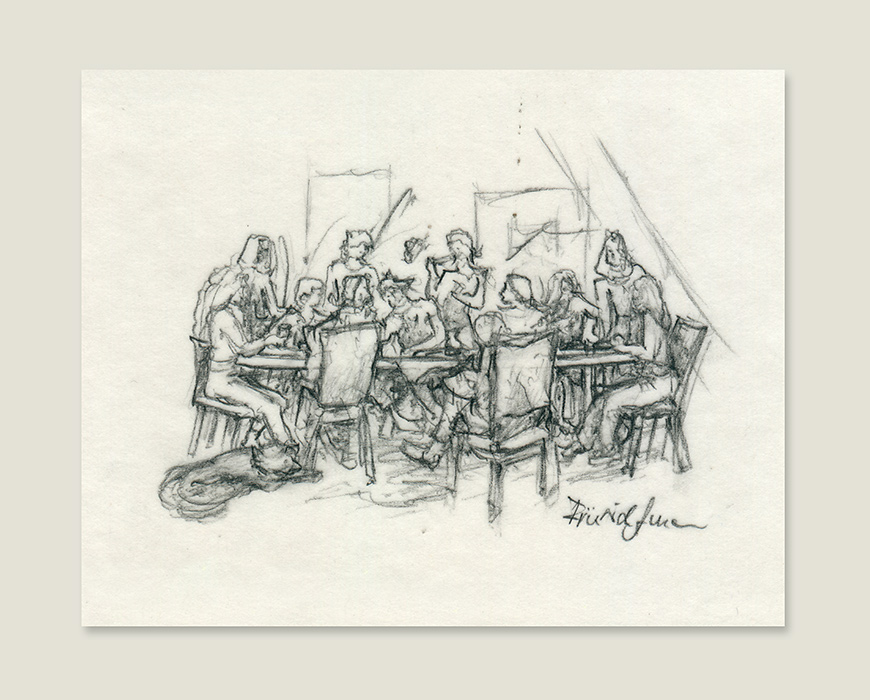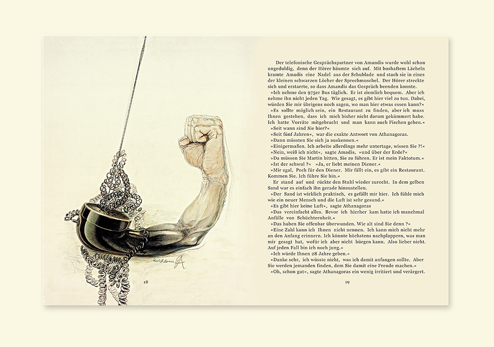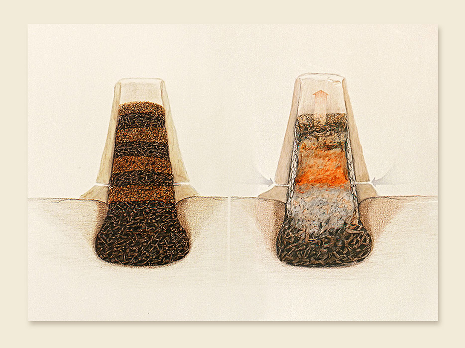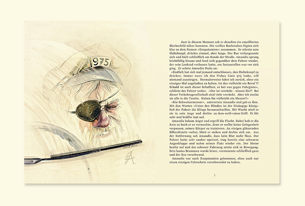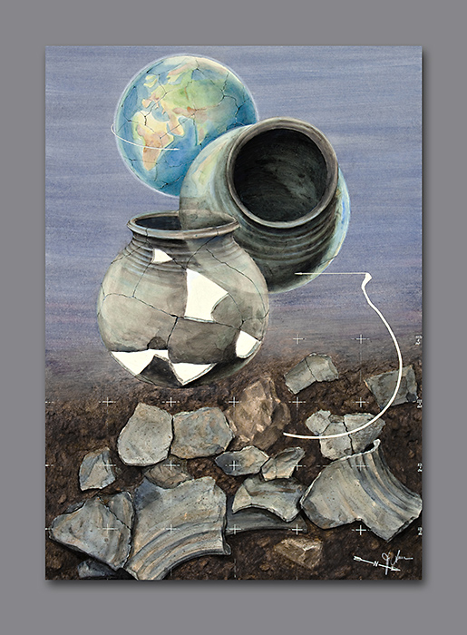 Damit das Wissen um diese Grenzen erweiterte Blickwinkel auf eine Illustration eröffnen kann, gebe ich ab und an Infos zur Aufgabenstellung. Meist hatte ich beste Ergebnisse unter engen Vorgaben, sei es beispielsweise Prüfungsdruck, der Schnellverarbeitungszwang von 2-Komponenten-Farbe oder der Abräumbagger-Vordrang bei der Grabungsdokumentation.
